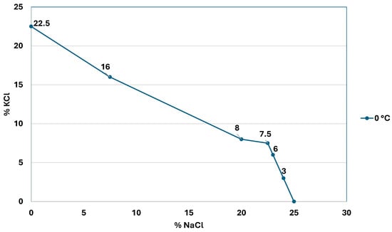 Solubility curve of sodium and potassium chloride at 0 °C (modified from: [4]).