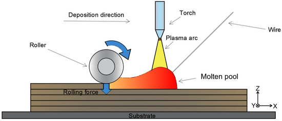 - Chen, Q.; Wang, G.; Zhang, H.; Li, R. Research on microstructure and mechanical properties of hybrid plasma arc and micro-rolling additive manufacturing of Inconel 718 superalloy. Rapid Prototyp. J. 2022, 28, 1509–1519. [Google Scholar] [CrossRef]