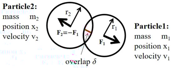 The force from particle collisions is determined by the deformation, which is measured by the overlap between pairs of spheres or the overlap between spheres and boundaries, as shown in Figure 2. The equation for overlap (less than 0 during collision) is
