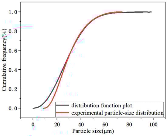 where is the mass fraction of particles with diameters greater than , is the average particle size, and n is the index parameter. Based on the experimentally measured particle-size distribution, and are obtained. Figure 17 shows the fitted distribution function with , and it can well approximate the realistic particle-size distribution.