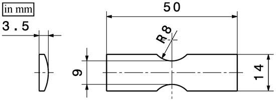 Additionally, tensile tests were conducted to characterize the material. The specimen geometry for these tests is depicted in Figure 2.