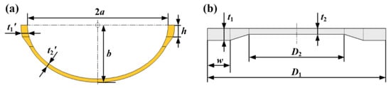 Size of ellipsoid shell and plate: (a) target shell and (b) plate with differential thickness.