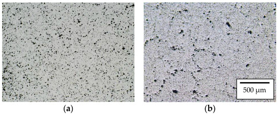 Figure 5 illustrates the cross-sections of (a) dense CP-Ti and (b) dense Ti-13Ta-6Sn samples captured using optical microscopy. Measurements using Archimedes’ principle showed that the Ti-13Ta-6Sn samples had an average porosity of 12%, whereas the CP-Ti samples had an average porosity of 7%. These results corroborate the compressibility analysis discussed in the previous section.