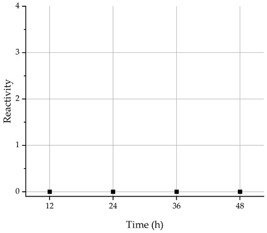 Figure 18 shows the qualitative cytotoxicity analysis of dense Ti-13Ta-6Sn samples and Table 6 shows the qualitative classification method according to ISO 10993-5 [74]. Regarding cell culture analysis, dense Ti-13Ta-6Sn showed no sign of cytotoxicity. There were discontinuous intracytoplasmic granules without cell lysis, and the cells remained intact without any morphological alterations, reaching nearly 100% subconfluence. Throughout the entire testing period (12 to 48 h), the cytotoxicity index was 0, indicating no toxic effect on the NCTC Clone 929 cell line. Ibrahim et al. [75] observed intense antibacterial activity in Ti–Ta–Sn samples. The phenomenon was thought to be because of the binding of the composite metals (Ti–30Ta and Ti–30Ta–xSn) to the outer membrane of E. coli bacteria. The inhibition zones were larger with the increase in Sn additions. Several studies have exhibited the antibacterial effect of Ta and Sn oxides, as these oxides exhibit robust antibacterial effects [76,77,78]. It suggests that the alloy is a good candidate for biomedical applications.