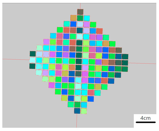 During the printing process, both too low and too high energy densities increase the surface roughness during printing. If the energy density is too low, it may lead to incomplete melting of the powder and make defects on the surface of the sample; if the energy density is too high, it may lead to splashing of the liquid metal and affect the surface roughness of the part [24,25]. The selected experimental variables were laser power, laser scanning speed, and hatch distance; see Table 1. The basic parameters were the commonly used AlSi10Mg printing parameters provided by the printer equipment manufacturer. On this basis, the research articles on AlSi10Mg should be referred to [26,27]. The range of parameter variation was given. In the experiment, the process parameters of sample 1 were set as the basic parameters, and the remaining sample parameters were determined by random selection. There was no replication of experimental data. Since the thickness of the powder layer cannot be adjusted during printing, we have standardized the powder layer thickness for all parts to 30 μm, as this is the most commonly used thickness for this aluminum alloy. For printing, the sample placement is shown in the following figure (Figure 1). A total of 144 different sets of experimental samples were designed. The samples were rectangles 1.2 cm in width by 1 cm in height. We conducted all sample prints at once, set all parts to the same scanning strategy, and eliminated the remelting process to minimize the influence of extraneous factors. Furthermore, the chosen printer was equipped with a dynamic focusing function that mitigates deviations in the laser incidence angle caused by varying positions of components on the substrate.