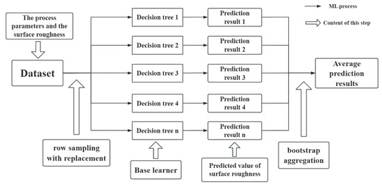 As mentioned above, the RF regression is an algorithm based on bootstrap aggregation (bagging). Multiple decision trees are predicted in parallel, and the average predicted value of all decision trees is ultimately given [28]. The operation principle is also shown in Figure 2.
