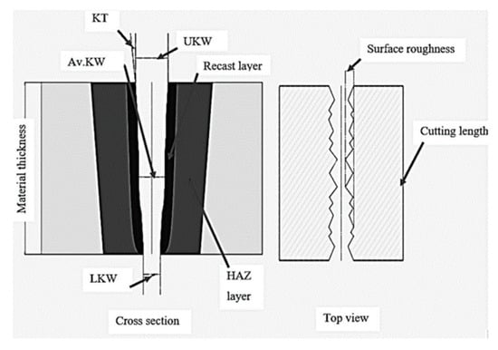 - The quality evaluation factors of laser-cut metal sheets include surface roughness, kerf width, kerf taper, HAZ width, kerf deviation, material removal rate, and slag hanging. The parameters affecting the cutting quality can be categorized into beam parameters and process parameters, and commonly studied process parameters include laser power, cutting speed, and gas pressure. The surface roughness and kerf width have often been used to evaluate the cutting quality.