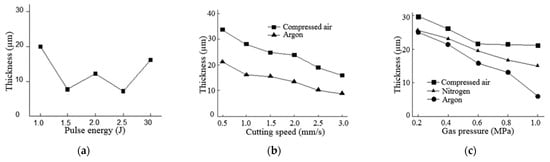 | Shanjin et al. [46] | pulsed Nd:YAG laser cutting | 1 mm TC1 | SFE | Q, PW, v, p | air, Ar, N2 | HAZ | Medium-Q, high-PW, high-v, and high-p, Ar |