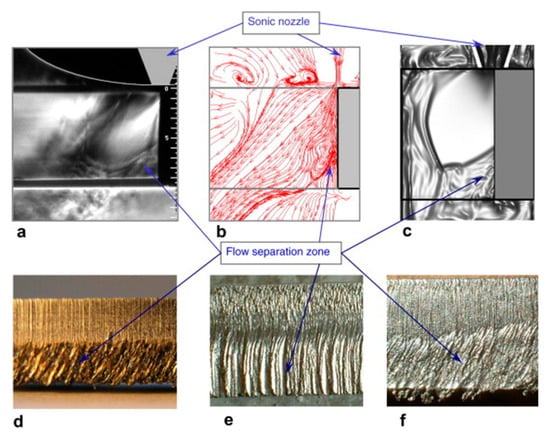 - Kovalev, O.; Yudin, P.; Zaitsev, A. Modeling of flow separation of assist gas as applied to laser cutting of thick sheet metal. Appl. Math. Model. 2009, 33, 3730–3745. [Google Scholar] [CrossRef]