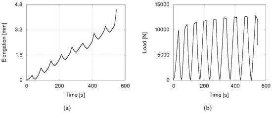 • Load–unload tensile tests are conducted on the wire rods. The first loading is carried out to a value beyond the yield point, and, from the second loading onwards, the deformation level is gradually increased. This increment is performed successively until material fracturing is achieved. This approach allows damage to accumulate at different levels of plasticity.