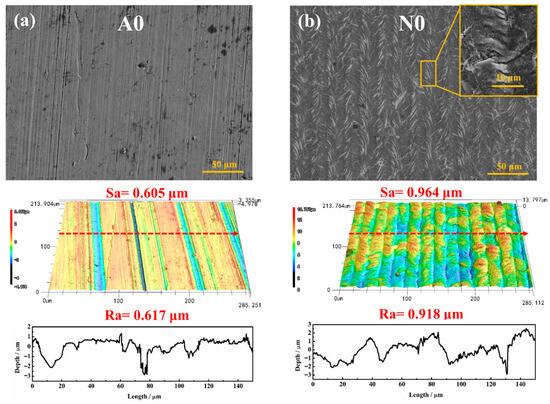 Surface morphology of the (a) A0 and (b) N0 samples.