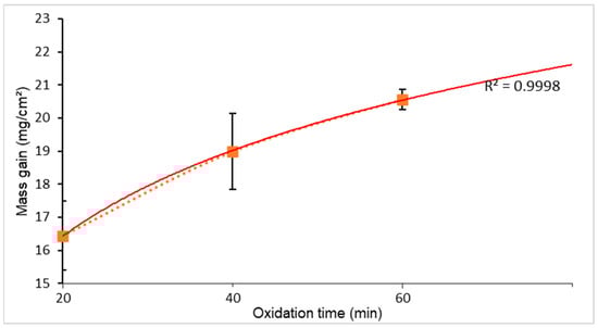 Besides the mass gain expressed as mg/cm2, it was also expressed as a percentage (%) according to the following formula: