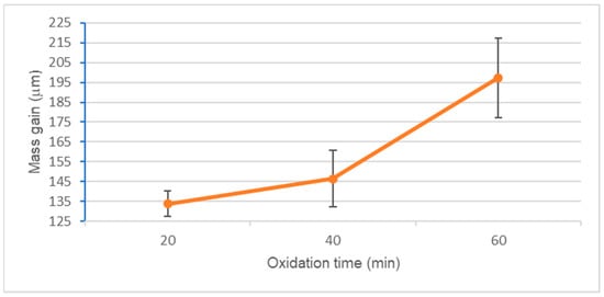 Table 2 and Figure 1 show the mass gain after the oxidation test for 4140 steel. As the oxidation time increases, the mass gain of the samples increases.