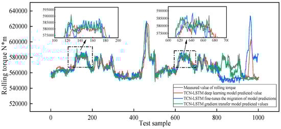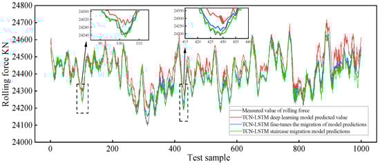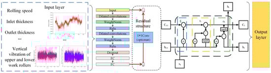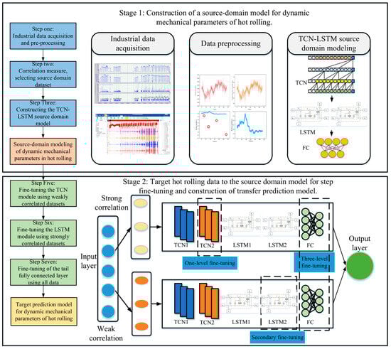 - Compared with the traditional mechanism model and deep learning model, this paper adds the horizontal vibration signal and vertical vibration signal of the F3 work roll in the prediction of the mechanical parameters of the hot rolling process and establishes a transfer model based on the step of TCN-LSTM under a non-steady state.