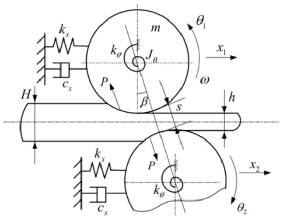 - Zhang, M.; Peng, Y.; Sun, J.L.; Zhang, Y. Horizontal vibration in hot tandem rolling mill considering asymmetric movement of upper and lower work rolls. J. Cent. South Univ. Nat. Sci. Ed. 2017, 48, 3239–3247. [Google Scholar]