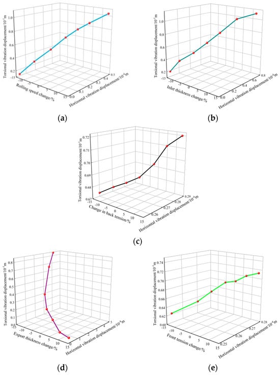 - The horizontal-torsional vibration model is further constructed, and the relationship between process parameters and mill vibration is deeply analyzed by using the parameters of rolling force and rolling moment predicted by the TCN-LSTM step strategy transfer model as inputs. The results show that the rolling speed, entrance thickness and exit thickness have a significant effect on the mill vibration. In this regard, the vibration suppression measures of reducing the rolling speed by 10% and the entrance thickness by 10% successfully and effectively reduced the vibration of the mill.