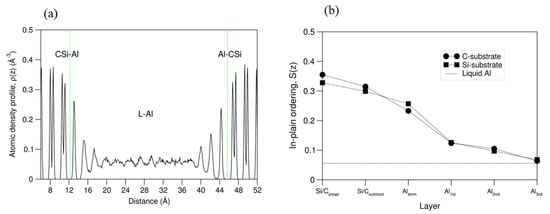 - Jiang, B.; Men, H.; Fan, Z. Atomic ordering in the liquid adjacent to an atomically rough solid substrate. Comput. Mater. Sci. 2018, 153, 73–81. [Google Scholar] [CrossRef]