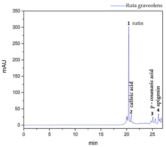 3.1. HPLC Analysis of Ruta Graveolens Extract