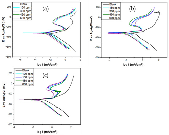 - At 25 °C and 600 ppm extract, the potentiodynamic polarization results revealed a 98.10% inhibition efficiency. These results also indicated that the extract acted as a mixed-type inhibitor. At the same temperature and extract concentration, the electrochemical impedance results showed that the values increased with an increasing extract concentration, and the highest inhibition efficiency reached 96.32%.