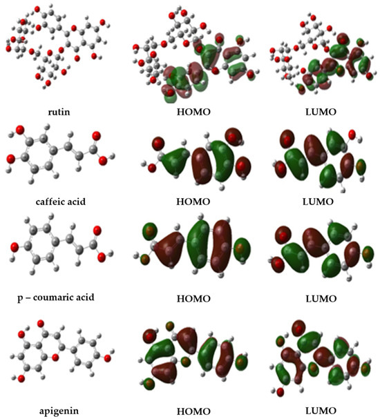 | p-Coumaric acid | −6.22 | −1.99 | 4.23 | 6.20 | 2.04 | 4.13 | 2.08 |