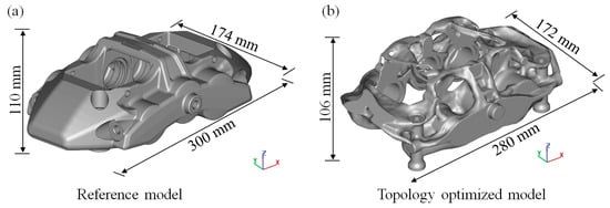 - The topology-optimized brake caliper is built with a vertical orientation that minimizes the melting area that causes thermal deformation and residual stress. With an effective PBF process, a topology model and a precise brake caliper with an error of up to 97 μm were fabricated.