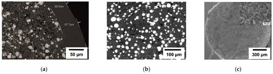 Cross section of commercial composite filaments: (a) Ultrafuse 316L BASF filament based on polyoxymethylene (POM) and 316L steel powder (reprinted from ref. [48]); (b) Virtual Foundry filament based on polylactic acid (PLA) polymer and 316L steel powder (reprinted form ref. [65]); (c) filament based on a polymer multicomponent binder and 17-4 PH steel powder (reprinted from ref. [42]).