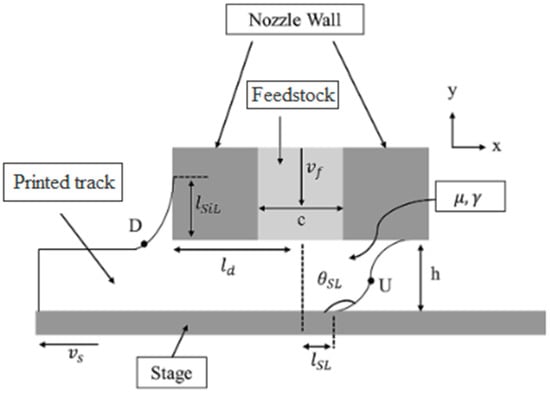 In the process of the paste extrusion, a shear stress γ must be applied, which must be greater than τy of the paste. In this case, the paste begins to deform and flow. The flow behavior of a viscous-liquid paste can be determined by shear viscosity. The relationship between shear rate, shear stress, and paste viscosity can be described by the Herschel–Bulkley model, according to Equation (1) [109]: