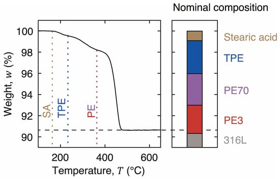 - Miura, H.; Osada, T.; Itoh, Y. Metal Injection Molding (MIM) Processing. In Advances in Metallic Biomaterials: Processing and Applications; Niinomi, M., Narushima, T., Nakai, M., Eds.; Springer Series in Biomaterials Science and Engineering; Springer: Berlin/Heidelberg, Germany, 2015; Volume 4, pp. 27–56. ISBN 978-3-662-46841-8. [Google Scholar]