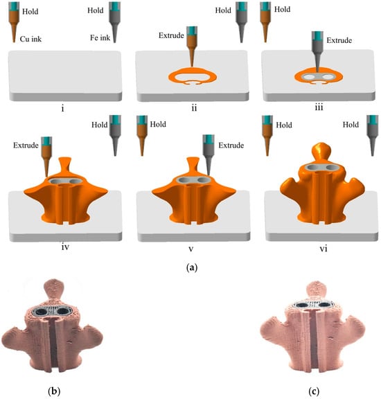 - Xu, C.; Quinn, B.; Lebel, L.L.; Therriault, D.; L’Espérance, G. Multi-Material Direct Ink Writing (DIW) for Complex 3D Metallic Structures with Removable Supports. ACS Appl. Mater. Interfaces 2019, 11, 8499–8506. [Google Scholar] [CrossRef]