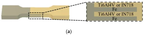 When joining dissimilar materials, problems are frequently associated with differences in these materials’ thermal properties and with the formation of brittle eutectic intermetallic compounds at the interface, which both lead to deterioration in the mechanical characteristics of the entire structure. Bimetallic systems often incorporate additional layers of other materials to mitigate these effects and improve the mechanical properties of the interface. In paper [40], the researchers used Ta/Cu interlayers to improve bonding in bimetallic parts based on Ni-Ti alloys, which are widely used in the aerospace industry due to their excellent specific strength and ductility properties. In paper [33], the researchers used a vanadium interlayer to fabricate bimetallic Ti-6Al-4V/Ti-48Al-2Cr-2Nb turbine blades. This technology resulted in the possibility of manufacturing one-piece blade disks for aircraft engines (Figure 1a).