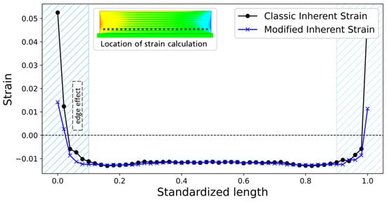 - A model consisting of a single-track wall with 20 layers was used to compare the calculated distortion of a thermomechanical simulation and an inherent strain simulation using an element-by-element application of the inherent strain.