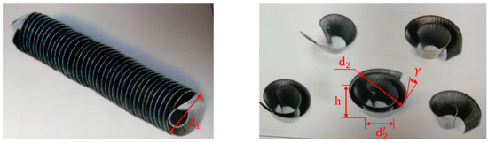 As depicted in Figure 4b, the main parameters of the combined cross-sectional profile were the web thickness of the inner flute r 1 = 0.98 mm, the web thickness of the outer flute r 2 = 0.98 mm, the arc radius of the bottom of the inner flute R 1 , the width of the bottom of the outer flute L 2   = 4 mm and the opening angle γ = 46.5°.