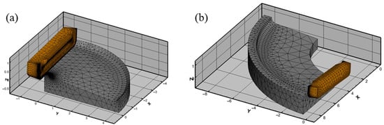 The selected workpiece of the material 42CrMo possessed a density of 7830 kg/m3, Young’s modulus elasticity of 206 GPa, Poisson’s ratio of 0.3, Heat Capacity of 486 J/kg·°C, Thermal Conductivity of 49.8 W/m·°C and Alpha of 14.0 × 10−6 1/°C. The main chemical components and mechanical properties are shown in Table 3 and Table 4, respectively.