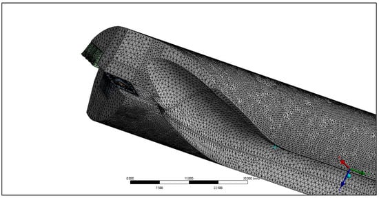 The STP format model of the tool holder was imported into ANSYS 2021R1 software. The shank of the tool holder was set as a fixed boundary condition. As shown in Figure 6, the maximum element size of the tool holder was set to 0.5 mm. The resulting meshes had 408,757 nodes and 286,093 elements.