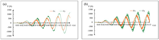 Figure 14. The cutting force of inserts during drilling. (a) Inner insert; (b) Outer insert.