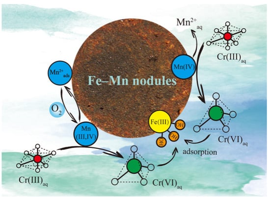 - Hai, J.; Liu, L.; Tan, W.; Hao, R.; Qiu, G. Catalytic oxidation and adsorption of Cr(III) on iron-manganese nodules under oxic conditions. J. Hazard. Mater. 2020, 390, 122166. [Google Scholar] [CrossRef] [PubMed]