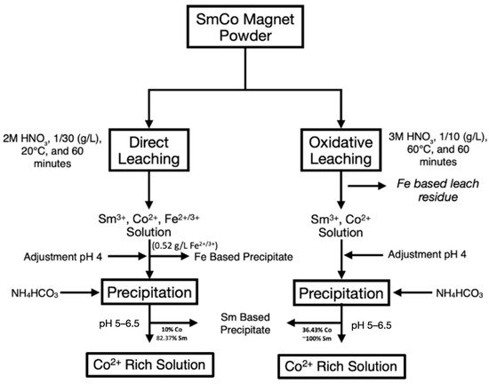 - Emil-Kaya, E.; Papakci, M.; Friedrich, B. Recycling of SmCo Magnets by Removal of Iron via Oxidative Leaching. Min. Metall. Explor. 2024, 41, 479–486. [Google Scholar] [CrossRef]