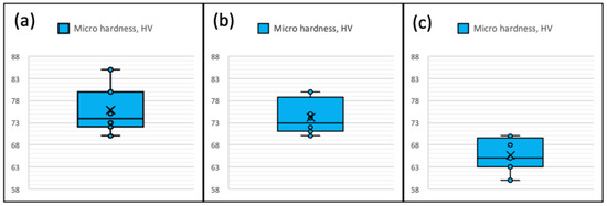 7 mm casting thickness sheets microhardness measurement results (a) AA5182 (b) AA5754 (c) AA5052.