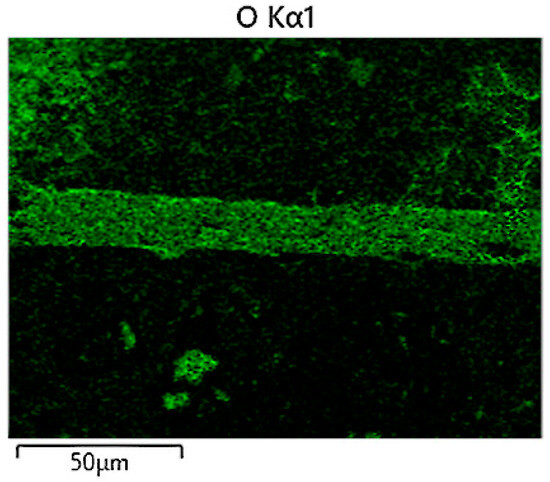 EDS map of oxygen (O) contribution for section of oxide formed on outer surface of a 15 nb tube sample post-normalisation in industry.