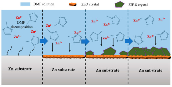 Wang, H.; Liu, J.; Liu, B.; Zhang, Z.; Ren, X.; Wang, X.; Wu, P.; Zhang, Y. Direct In Situ Fabrication of Strong Bonding ZIF-8 Film on Zinc Substrate and Its Formation Mechanism. Metals 2024, 14, 1403. https://doi.org/10.3390/met14121403