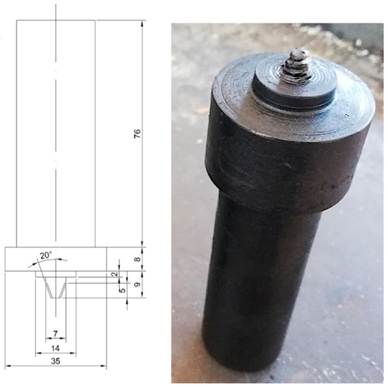 Schematic representation of the tool used for FSW. All dimensions are in millimeters.