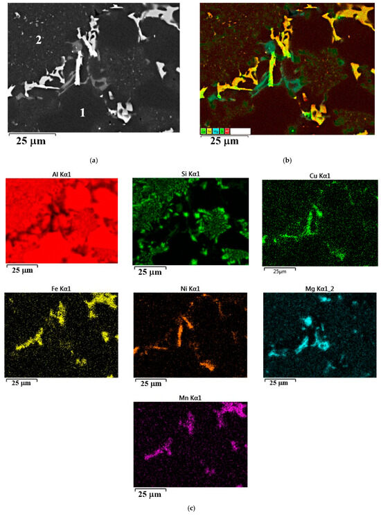 Microstructure of (a) the original silumin sample; (b) summarized elemental and (c) distributions of individual element.