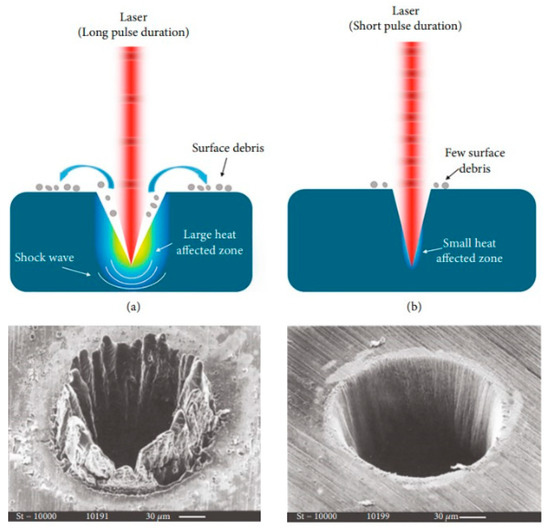 In contrast, with ultrashort lasers, heat-affected zones are significantly reduced or even absent [40].