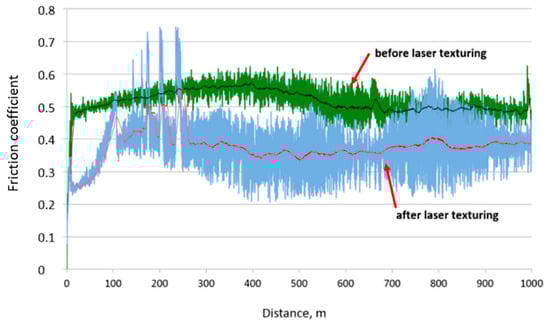 Looking to achieve friction reduction, Salguero et al. [23] found a linear impact of the energy density on the surface quality, whereas the scanning speed influences the homogeneity of the sample. Nevertheless, the microhardness was reduced by up to 33% on the textured area of AISI 630 steel. In another study, Salguero et al. [24] described the influence of microstructural modifications and oxidation processes on Ti6Al4V. They also highlighted that the tribological performance of textured surfaces strongly depends on the parameters used in laser patterning.