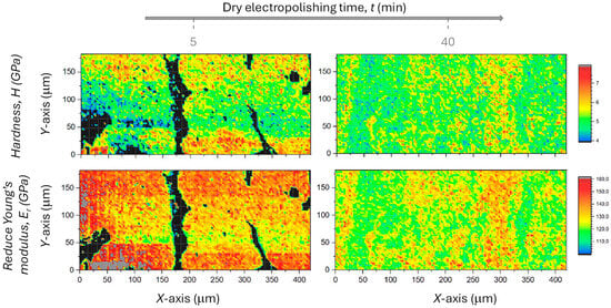 3.2. Hardness and Reduce Elastic Modulus Evolution