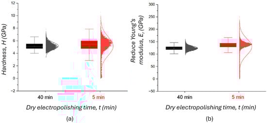 - Mechanical integrity, characterized by hardness and elastic modulus, remains constant and unaffected by the electropolishing process. Instead, the primary change is seen in the Full Width at Half Maximum values, which decrease as roughness is reduced. This indicates that electropolishing enhances the consistency of mechanical properties across the surface without altering the bulk properties of the material.