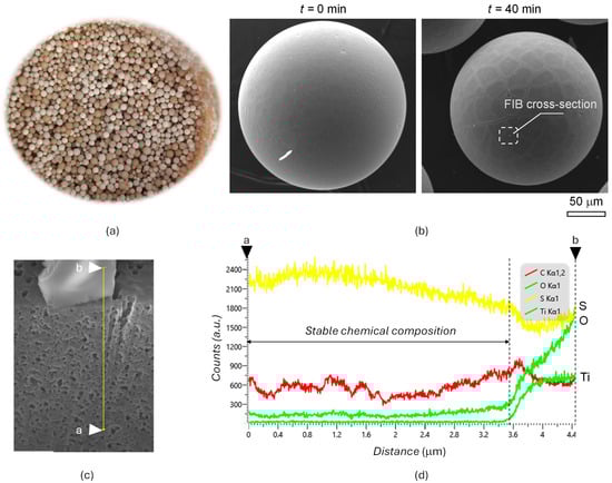 - The solid or active electrolyte particles undergo dehydration over time due to the Joule heating effect inherent in the electropolishing process. This dehydration leads to structural fragmentation of the particle, while titanium oxides generated during the process adhere to the particle surface. The presence of these oxides further stabilizes the particle’s surface, demonstrating a complex dynamic where both thermal and chemical processes influence the particle’s behavior during dry electropolishing.