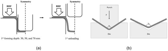 Springback effect after (a) bending in deep drawing [] and (b) V-bending. Reproduced with permission from Elsevier, 2024.
