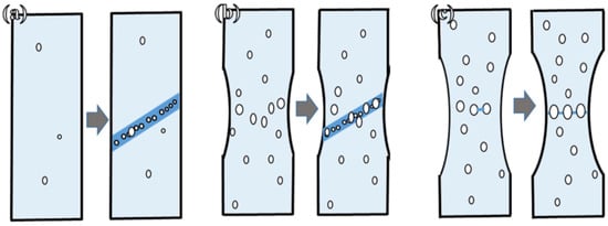 Types of localized failure that can occur through void nucleation: (a) Failure by localized shear plastic without necking, (b) Failure by localized shear plastic after necking and (c) Failure by void coalescence with obvious necking []. Reproduced with permission from John Wiley and Sons, 2024.