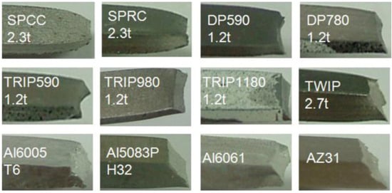 Two failure mechanisms: necking for SPCC and SPRC and ductile fracture for other sheet metals. SPCC and SPRC are conventional carbon steels []. Reproduced with permission from Elsevier, 2024.